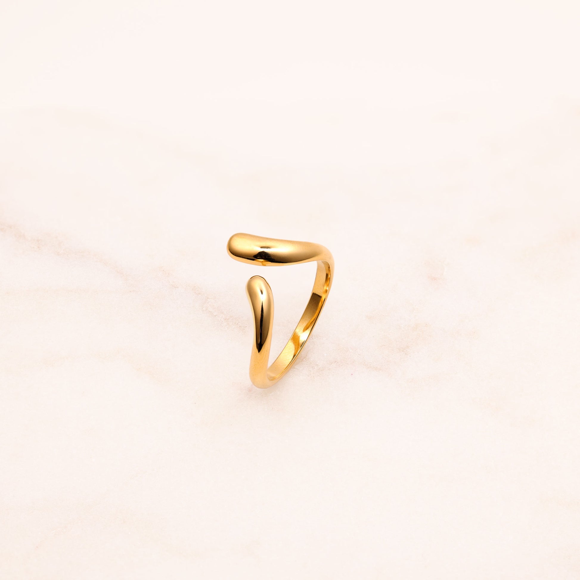 Sleek and sculptural, the Volta ring features a fluid, modern silhouette that wraps gracefully around the finger. Its open-ended design allows for easy adjustment, offering both comfort and style in one bold piece. Crafted from premium stainless steel and coated in 18ct gold with a polished PVD finish, made to shine from every angle.